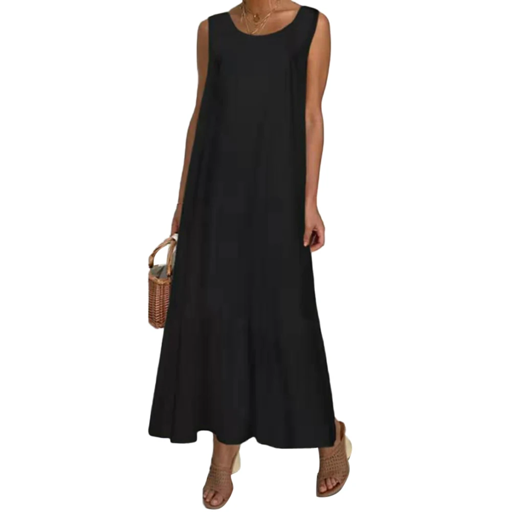 Платье женское повседневное свободного кроя, однотонный плиссированный пляжный сарафан без рукавов, с широким подолом, на лето