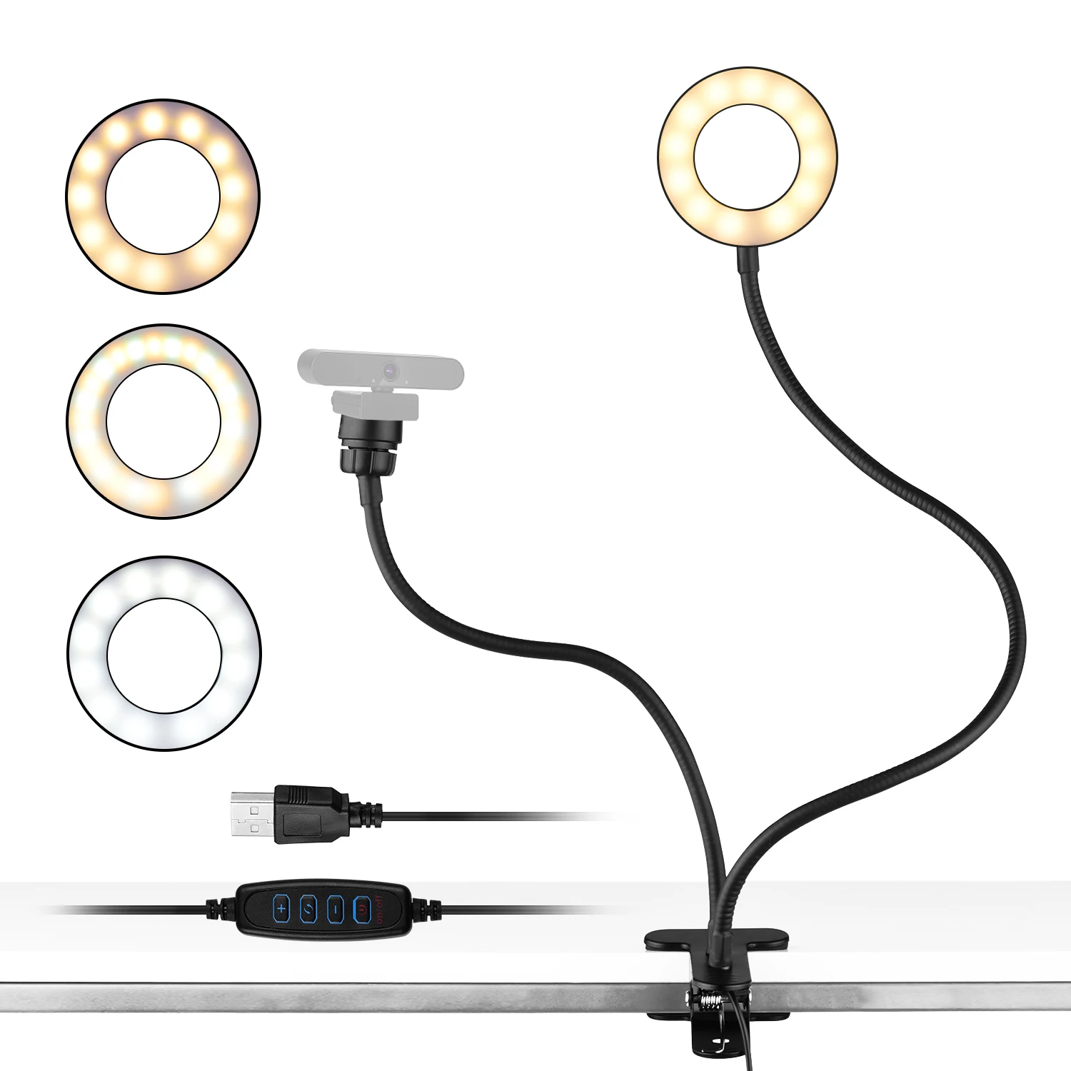 Мини светодиодная кольцевая лампа:3,5 дюйма мини кольцевой свет, имеет 3 режима освещения (теплый свет/смешанный свет/Холодный свет), и каждый режим освещения поддерживает 10 уровней регулируемой яркости.