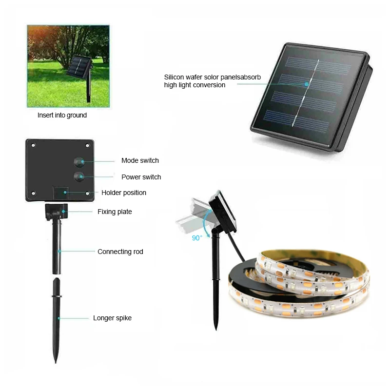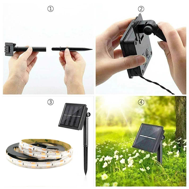 8 регулируемых режимов: Светодиодная лента на солнечной батарее основана на цветах RGB, вы можете изменить режимы светильник, чтобы создать множество различных атмосферы.
