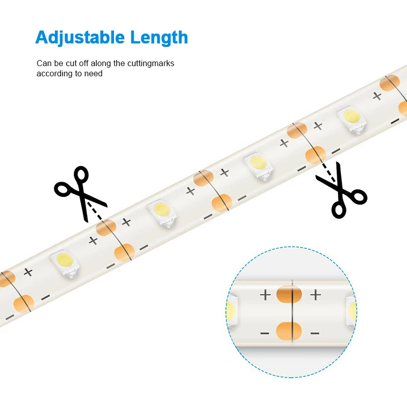 Каждый светодиодный можно обрезать: вы можете обрезать нужный вам размер, не беспокоясь об эффекте после обрезки.