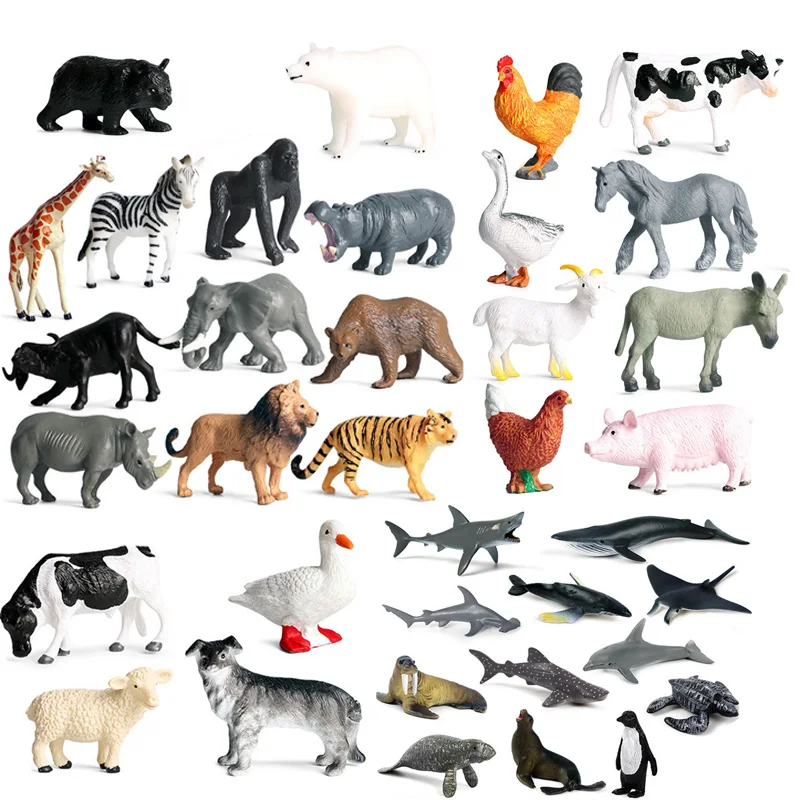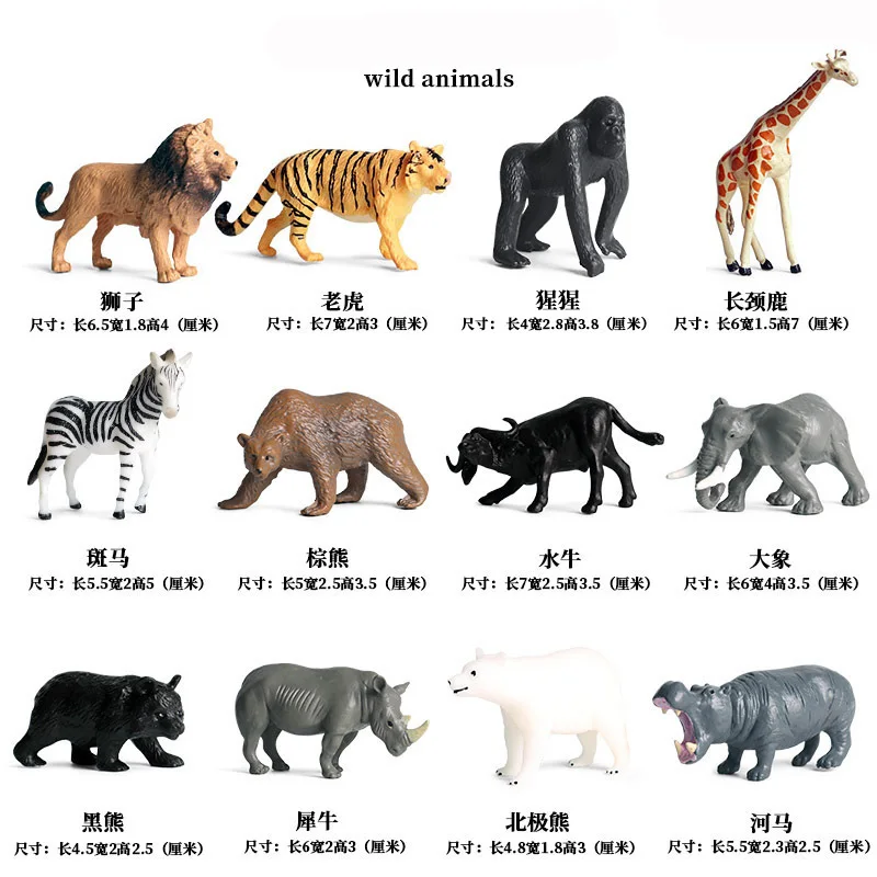 Игрушечная модель дикого животного, мини-кукла животное, Лев, тигр, утка, корова, птица, океан, ПВХ, 12 шт.
