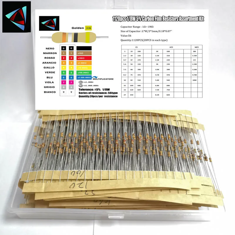 1120 шт. 18 Вт 5% 56 значений 1R 10 м 0,125 Вт карбоновая пленка