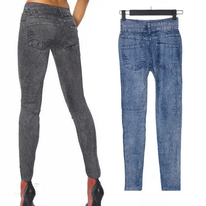 Женские брюки-леггинсы, облегающие брюки, Высокая талия джинсы джинсовые штаны Стрейчевые узкие брюки