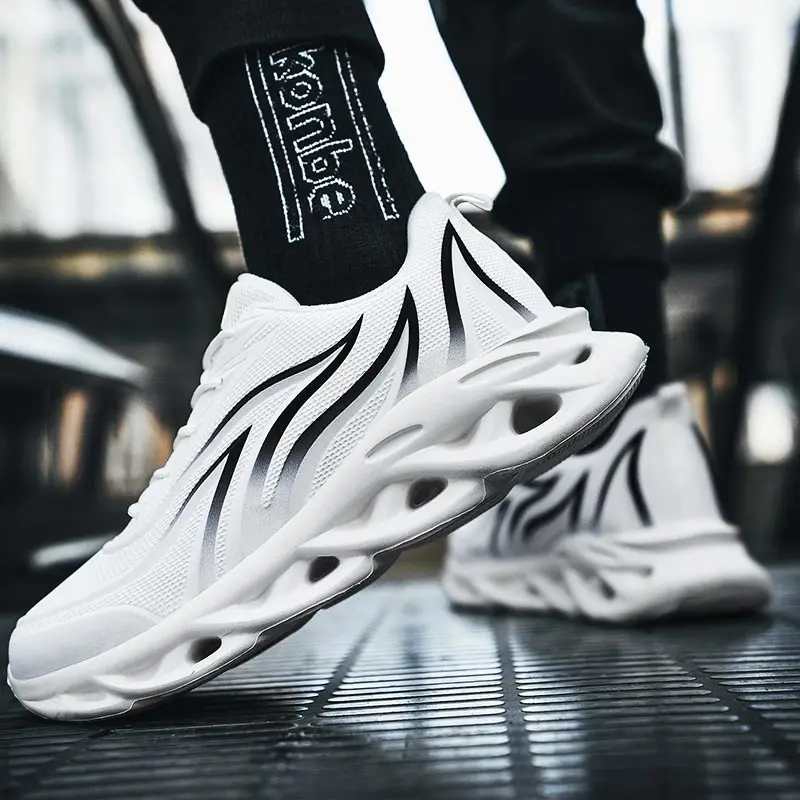 Кроссовки мужские с дырявой подошвой, светильник спортивная обувь, брендовые кроссовки, летняя спортивная обувь для бега, белые D-433, большие размеры