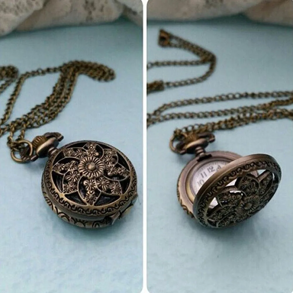 Винтажные Полые Бронзовые кварцевые карманные часы унисекс с мельницей и подвеской ожерелье