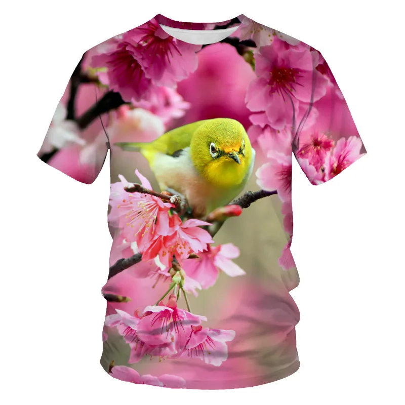 Футболка мужская с 3D-принтом, модная тенниска с изображением попугая, цветов, животных, птиц