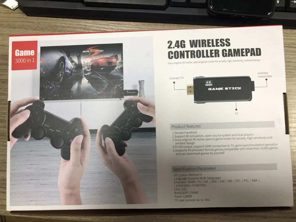 Описание продукта:Открытая исходная система Linux, поддержка DIY.Карта 32GB/64GB с 3000 +/10000 + игр внутри.Процессор: двухъядерный cortex-A7.Поддержка CPS/PS1/FC/GBA/PS1/MD/SFC/GB/GBC и более 40 игровых форматов.Ключ с двойным беспроводным контроллером геймпада.Поддержка 4K Ultra HD TV Video вывод. 1080P/720P.Игровая приставка с выходом HD TVПоддержка более 40 + форматов игрЧто в коробке1 * USB игровая приставка2*2,4G двойной беспроводной контроллер геймпада1 * Линия HD1 * Инструкция