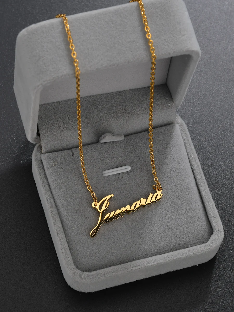 Имя:Диамон2020Индивидуальное модное ожерелье с именем из нержавеющей стали, персонализированное Золотое колье с буквами, ожерелье, подвеска с именем, подарок