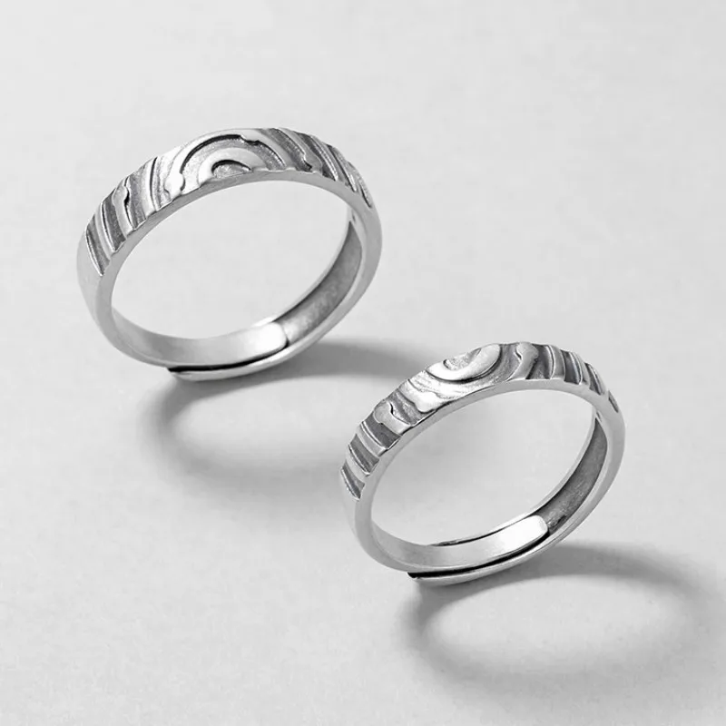 Открытое ретро кольцо для влюбленных женщин из стерлингового серебра 925 пробы, старые парные кольца ручной работы, изящные Винтажные Ювелирные изделия Flyleaf