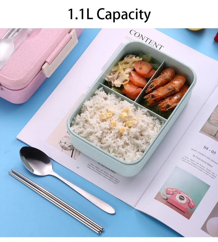 LDFCHENNEL 1,1л, коробка для ланча из пшеничной соломы, не содержит бисфенола А, коробка бэнто для здоровья, Нетоксичная, обеденная посуда для микроволновой печи, контейнер для хранения еды, Ланчбокс