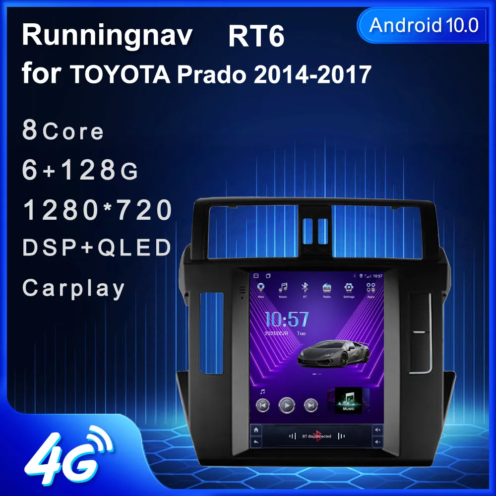 Runningnav 4G LTE Android 10 для TOYOTA Prado 2014-2017 мультимедийный стереопроигрыватель Tesla типа, автомобильный DVD-плеер, навигация, GPS-радио
