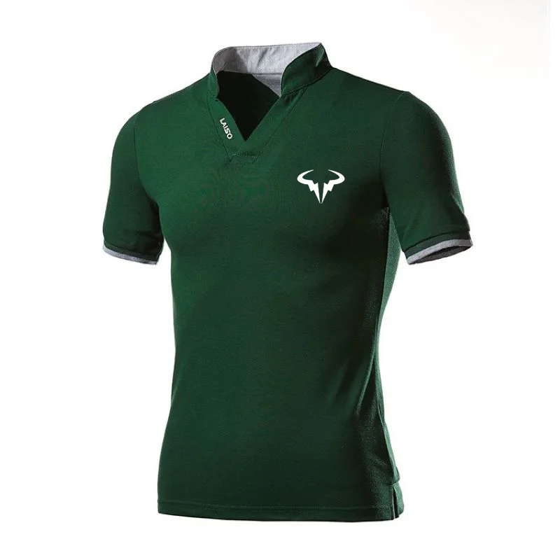 Мужская Тонкая рубашка-поло с коротким рукавом, с воротником-стойкой