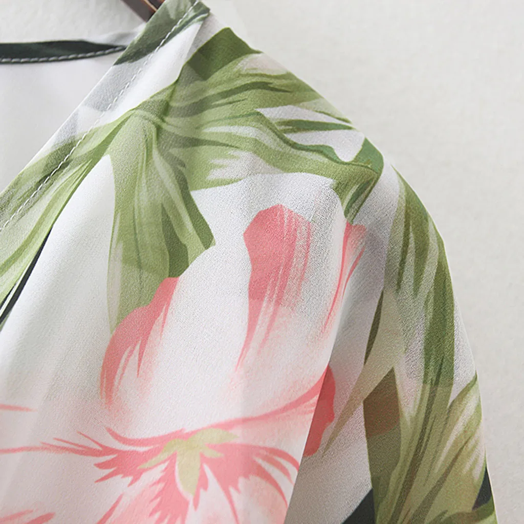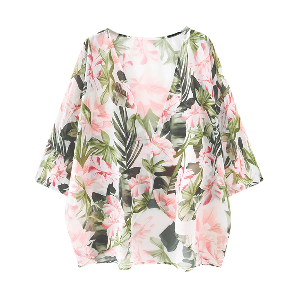 Женская шифоновая блузка с цветочным принтом, Свободный Повседневный Кардиган-кимоно с коротким рукавом, размера плюс, Солнцезащитный Топ