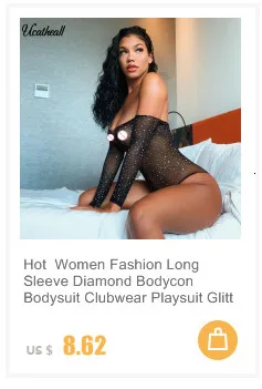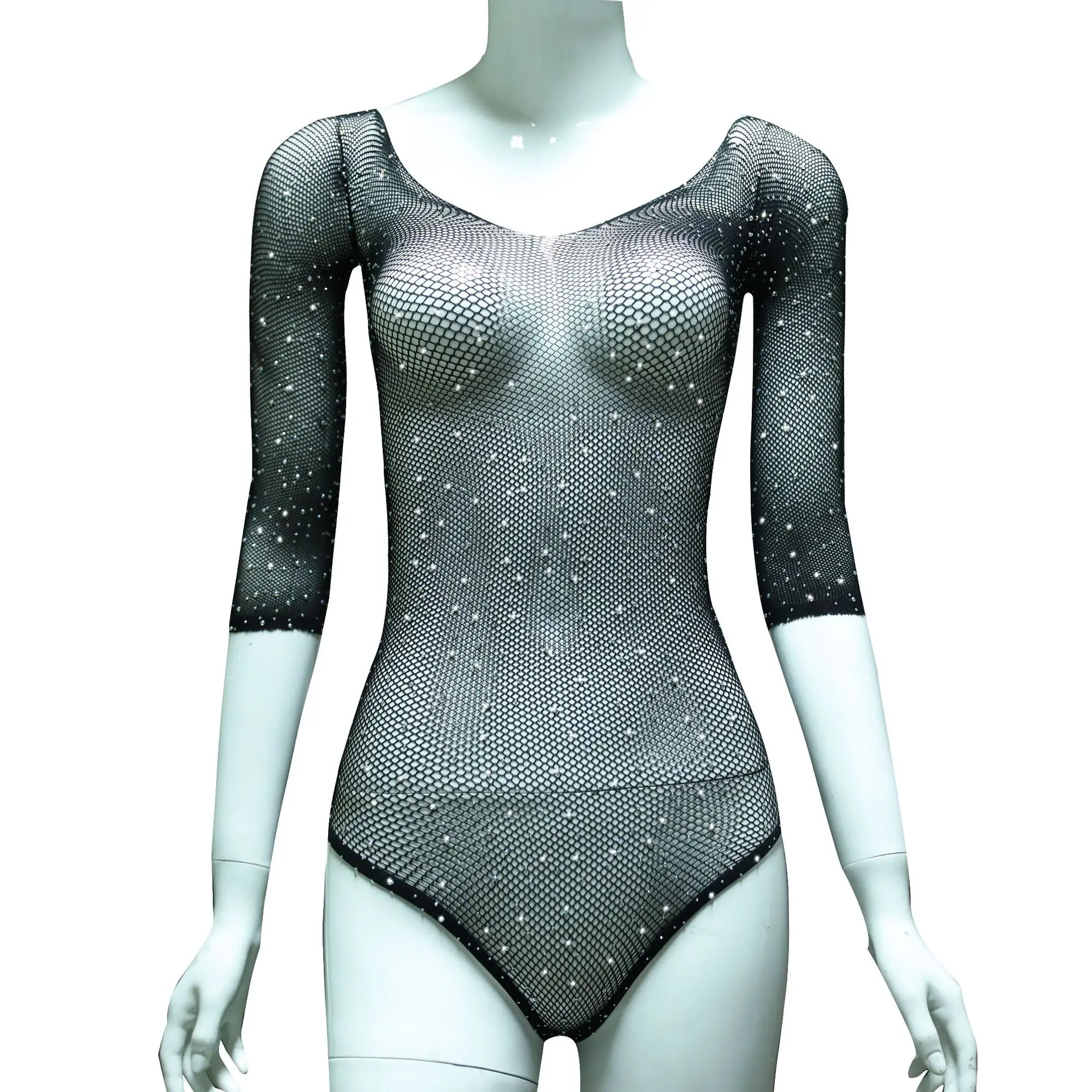 Хит, Женский Модный облегающий боди с длинным рукавом и бриллиантами, Клубная одежда, комбинезон с блестками, комбинезон, ажурный прозрачный комбинезон