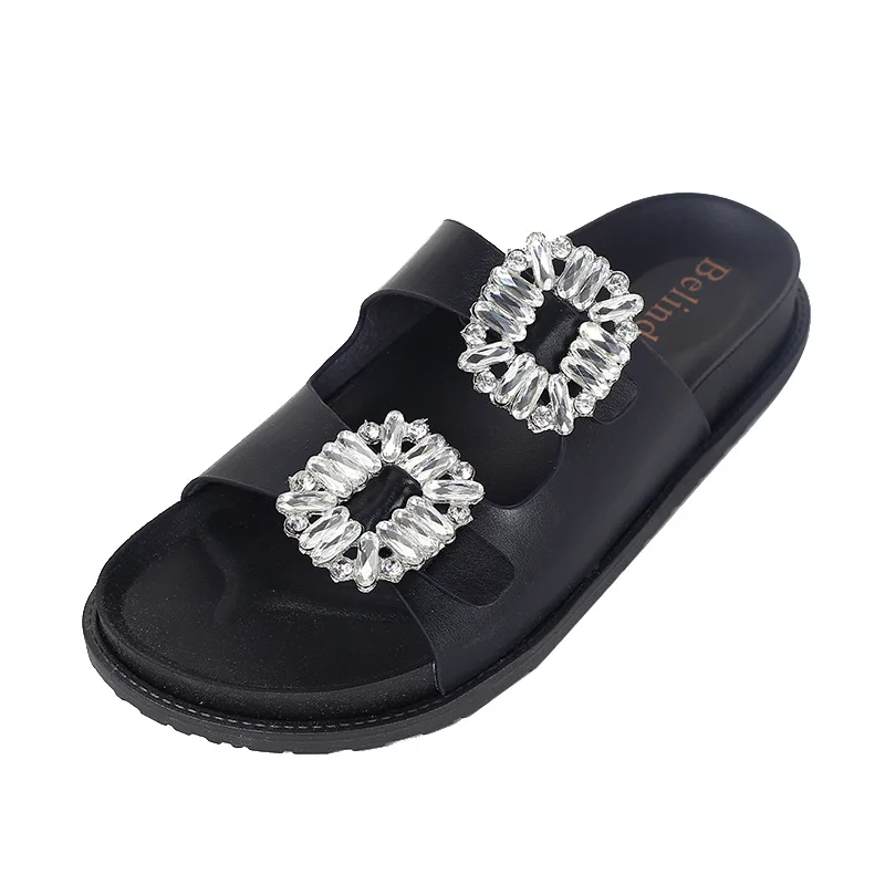 Тапочки Koovan Стразы 2021 на наклонной подошве женская летняя одежда 2020 новые стильные модные тапочки с ПВХ Подошвой
