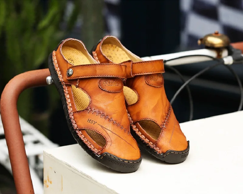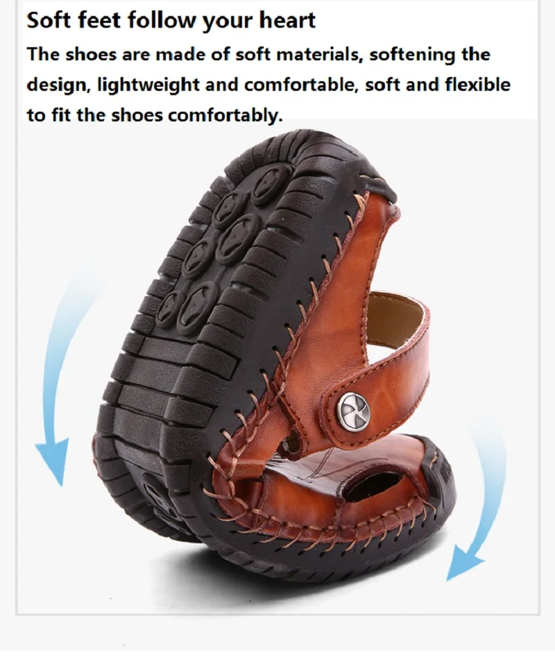 Классические летние мужские сандалии; Мягкая дышащая обувь из натур...