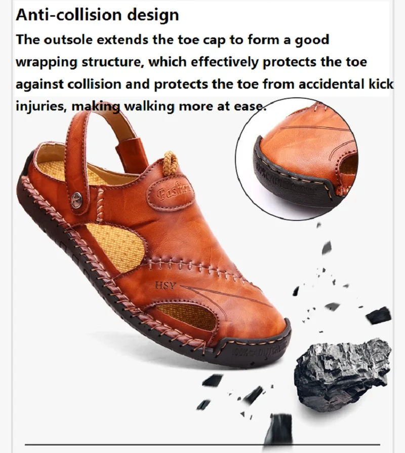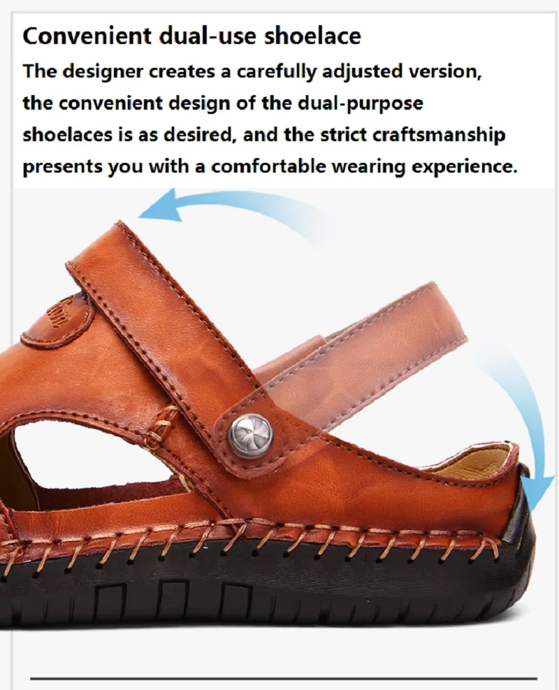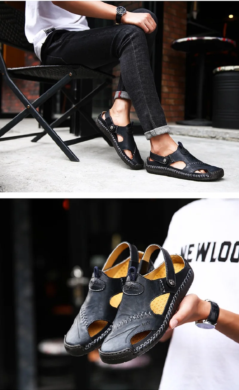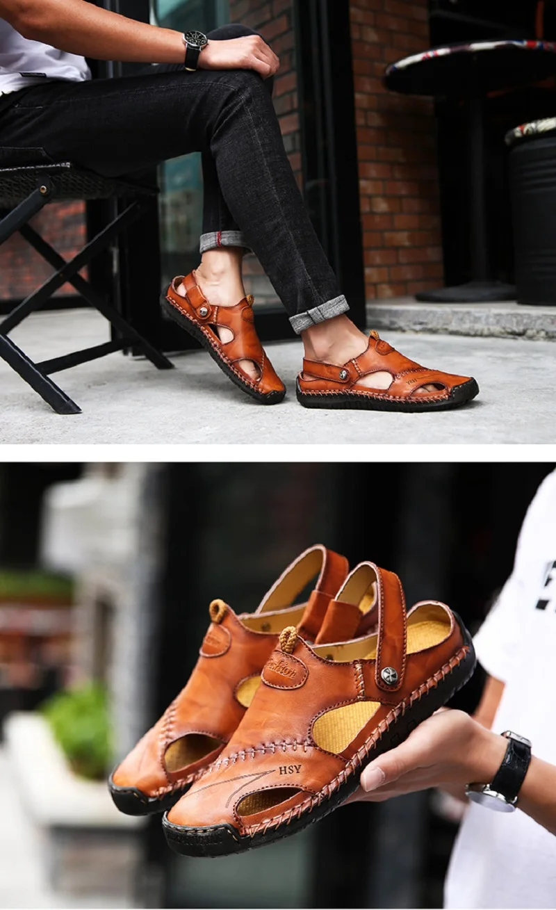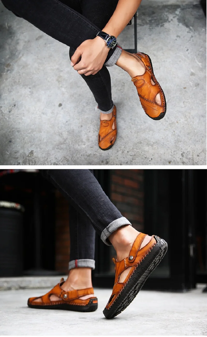 Мужские летние модные кожаные сандалии Baotou Летние повседневные к...