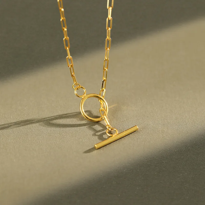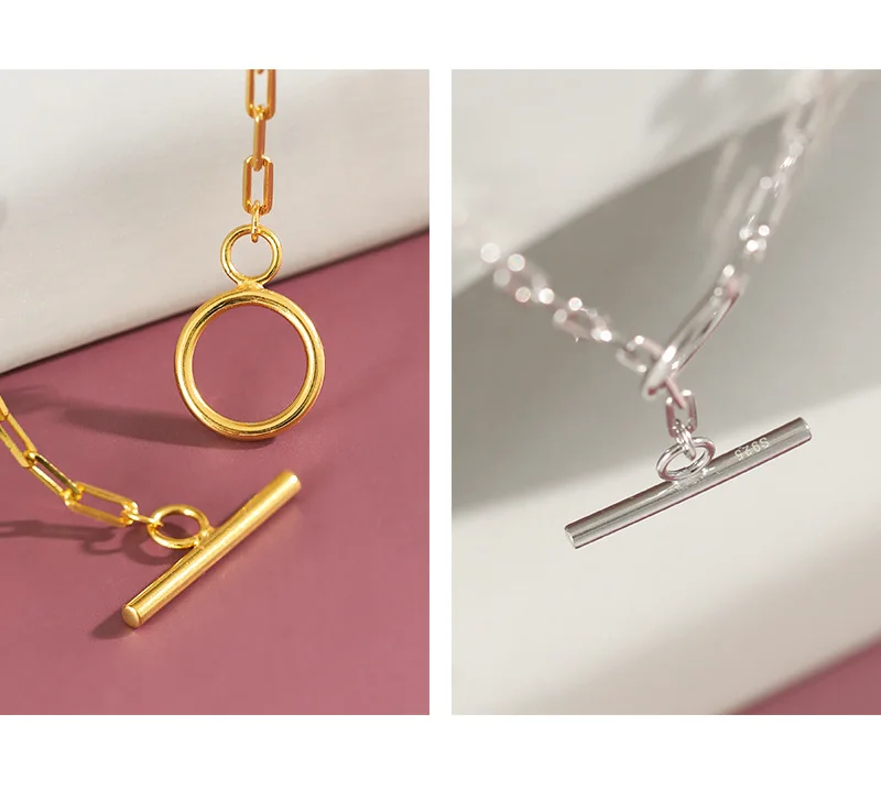 Реальные 925 стерлингового серебра, цепочек на шею в форме круга колье ожерелье для женщин, минималистский золото Цвет, ювелирное изделие, ожерелье для женщин, хорошее ювелирное изделие