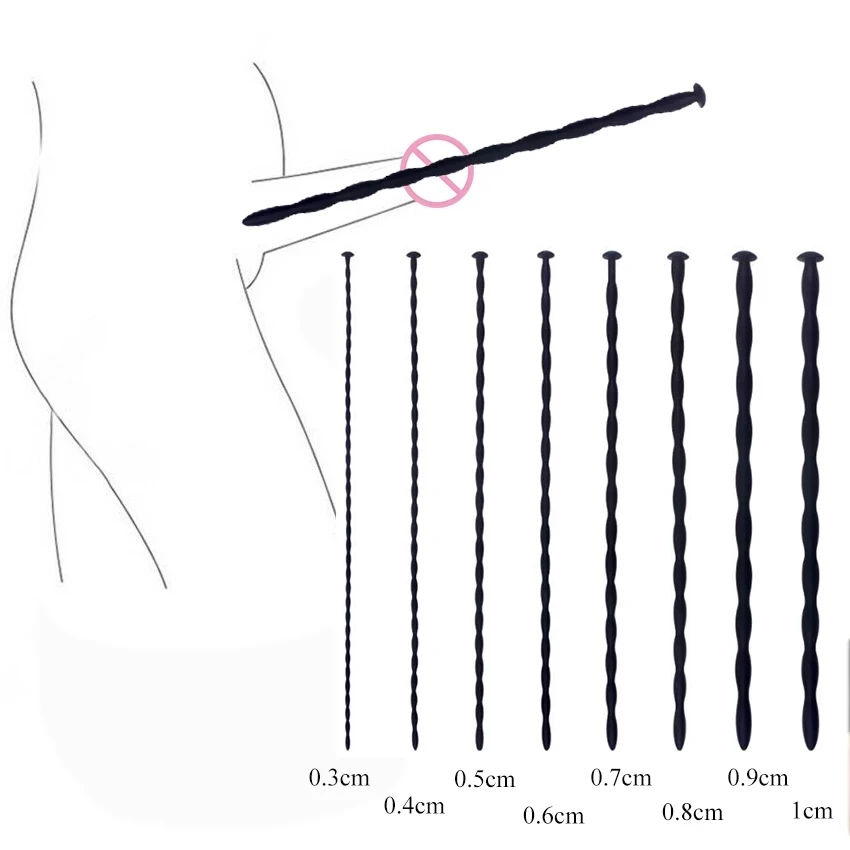 Стимулятор уретрального пениса, безопасный мягкий силиконовый расширитель для уретрального стержень-катетер, интимные игрушки, конский карандаш для глаз для мужчин, БДСМ-пробка, 8 размеров