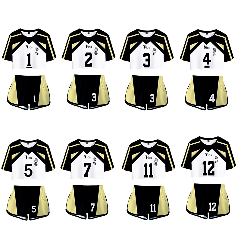 Униформа черлидера Haikyuu, костюм аниме для косплея, тонкие летние шорты с коротким рукавом, с открытым пупком, крутая футболка для женщин