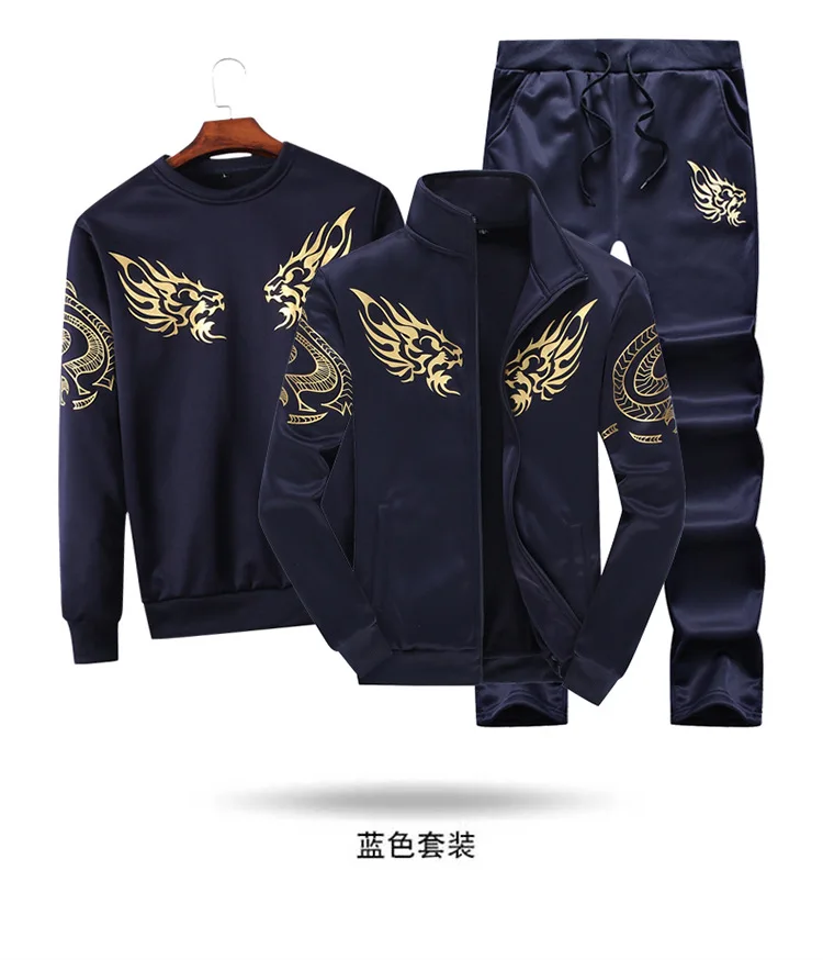 Мужской спортивный костюм с принтом дракона, спортивный костюм из т...