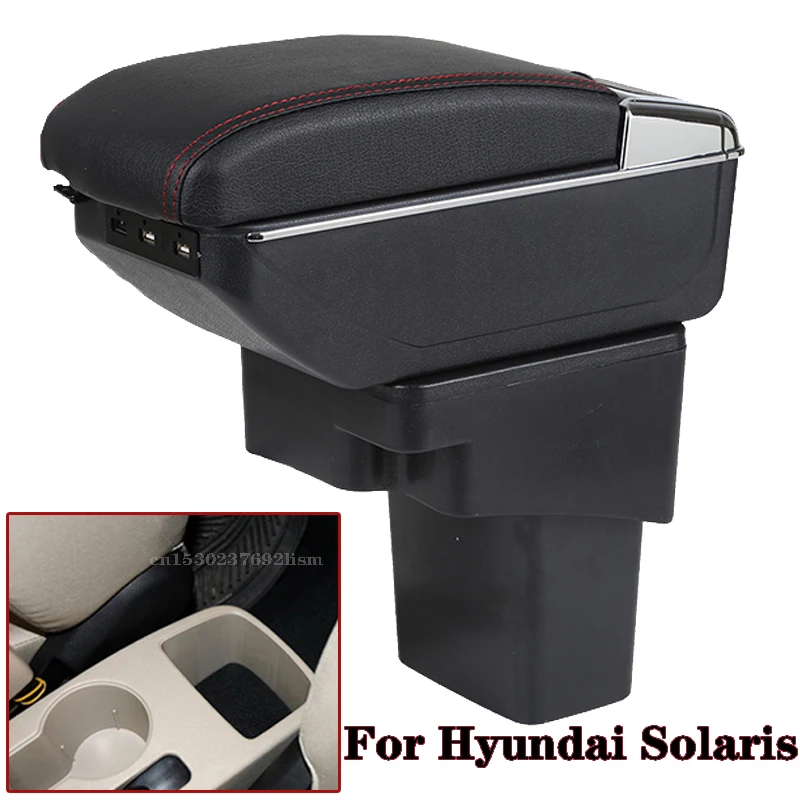 Коробка для хранения в подлокотнике для автомобиля Hyundai Solaris, Verna, Avega Grand, коробка в центральную консоль, двухслойная, USB-зарядка