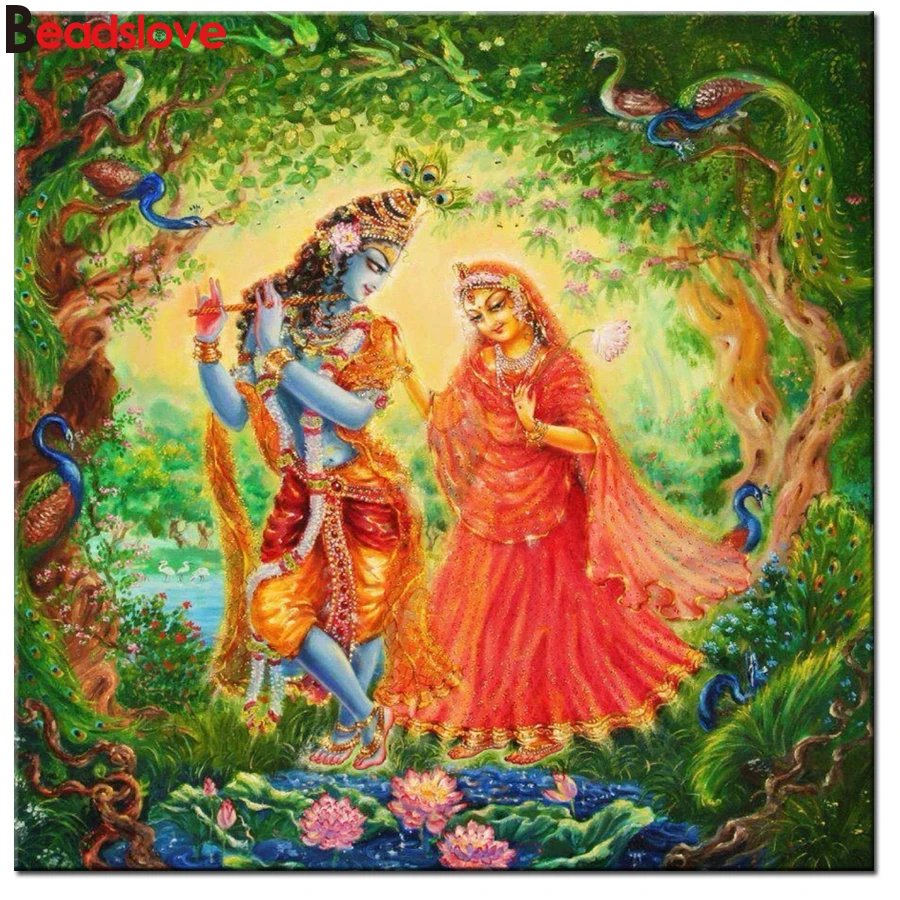 Алмазная живопись индийская религиозная 5D полная квадратная круглая дрель radha-krishna Алмазная вышивка крестиком Мозаика