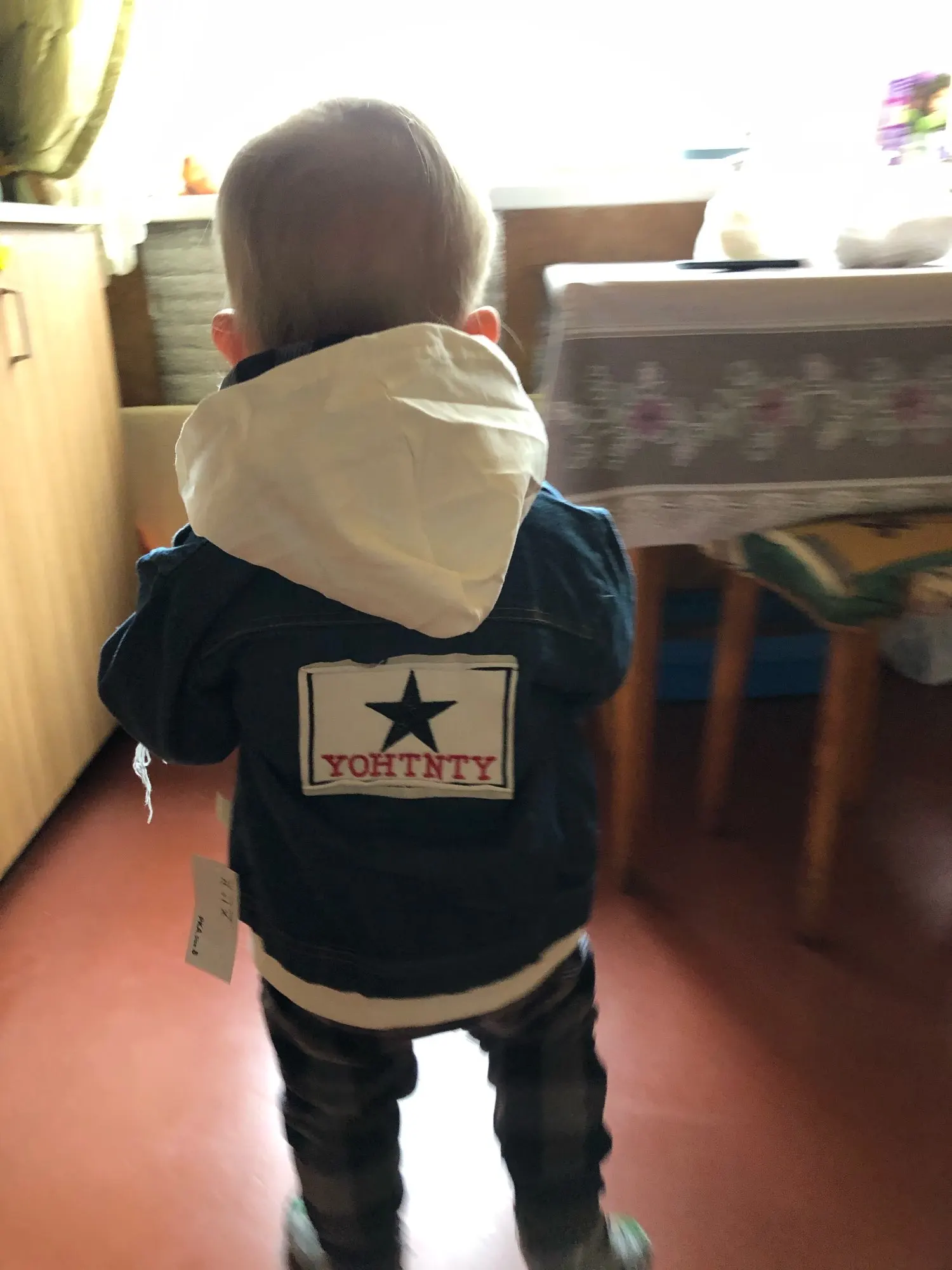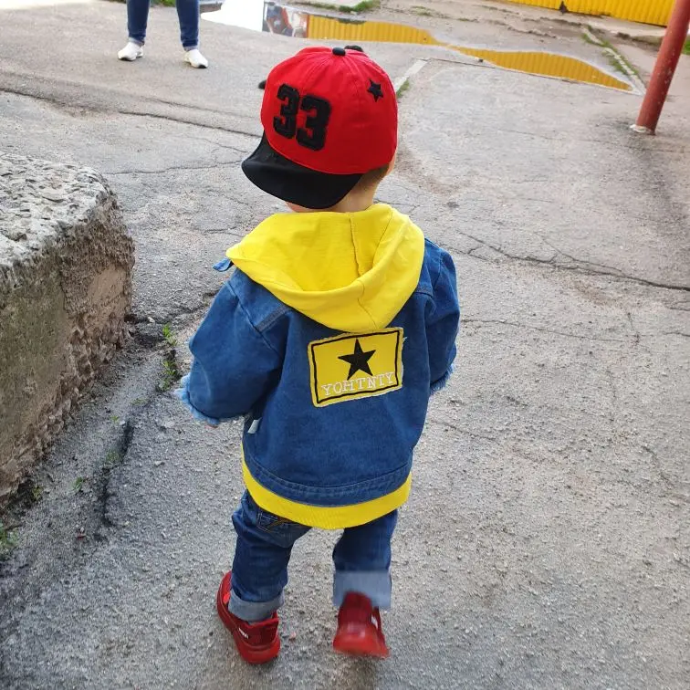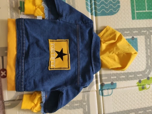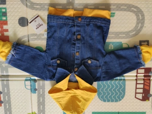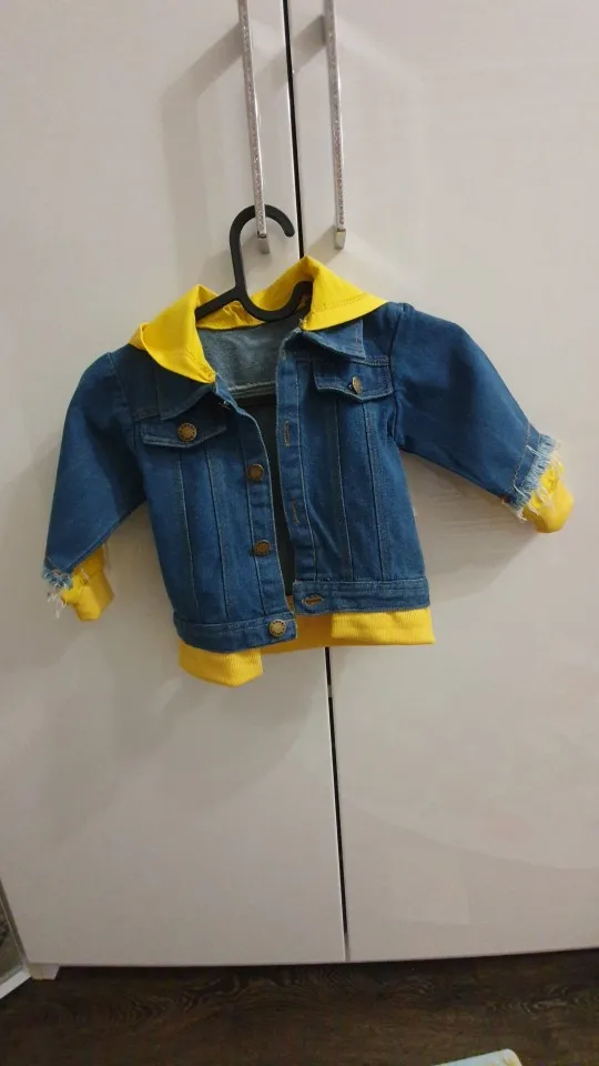 Курточка пришла довольно быстро, меньше чем за месяц. Сам джинс не самого лучшего качества, но Мягкий, жёлтые вставки ярко жёлтые. Заказывала на 2 года, нам сейчас 1год 1 месяц, в принципе, можно и сейчас носить, подвернув рукавчики. Но я брала на осень, так что к осени мы, ещё подрастём и будет хорошо. Но, кстати, по нижней части, курточка и не длинная, прикрывает поясницу. Мы ростом 78, может уже чуть выше Рекомендую, на ребенке смотрится классно. Спасибо продавцу за быструю доставку