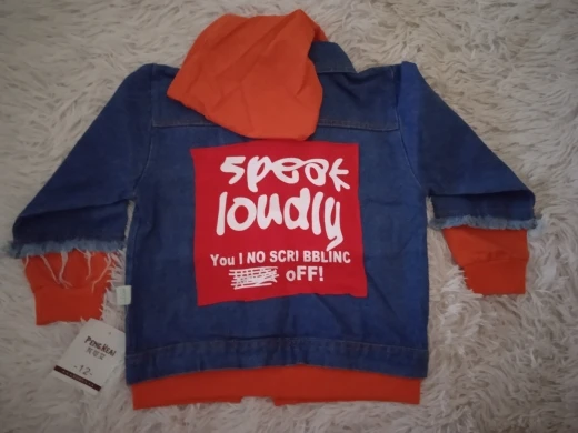 Красивая куртка. Тонкая джинсовая куртка. Выравнивает Ткань воняет, называемая огромной. Хорошо сочетается с моим 2 летним размером 98 Быстрая доставка