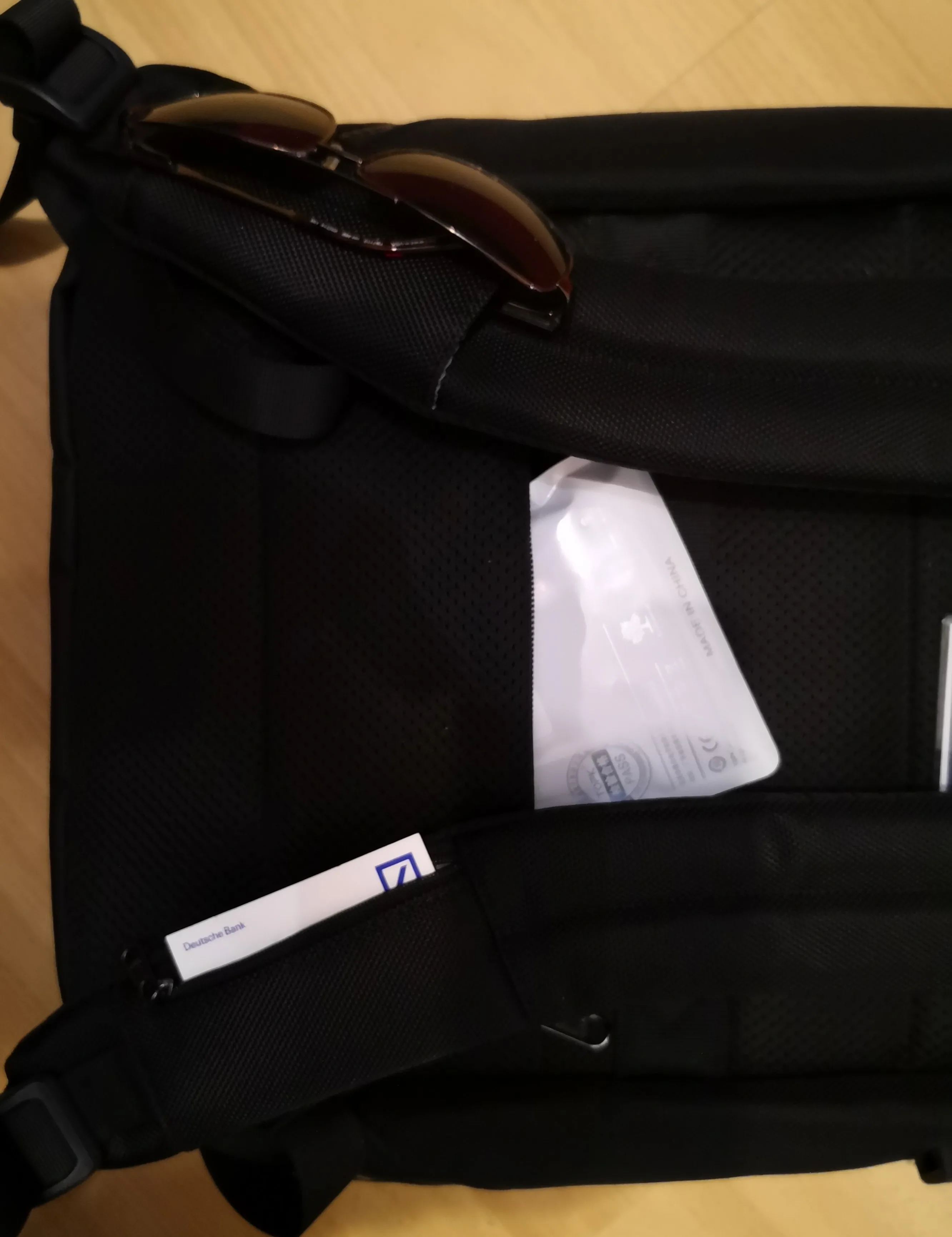 доставка в Германию 17 дней, отлично, тем более в новогодний сезон! качество рюкзака великолепное, материал, подкладка, строчки, замки, змейки - все на пять баллов. внутри два больших кармана по спинке - для 15 ноутбука и для планшета, ну или для документов, и еще два небольших кармана внутри справа и слева. есть секретный карман на спине для документов, есть маленькие кармашки на лямках - для карты и для очков. в прикупе маленький трехзначный цифровой замочек. продавцу спасибо, я очень доволен покупкой и сервисом! смело рекомендую всем!