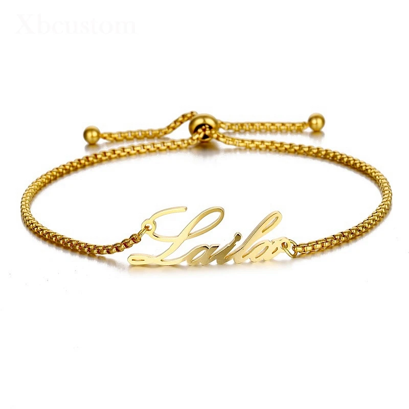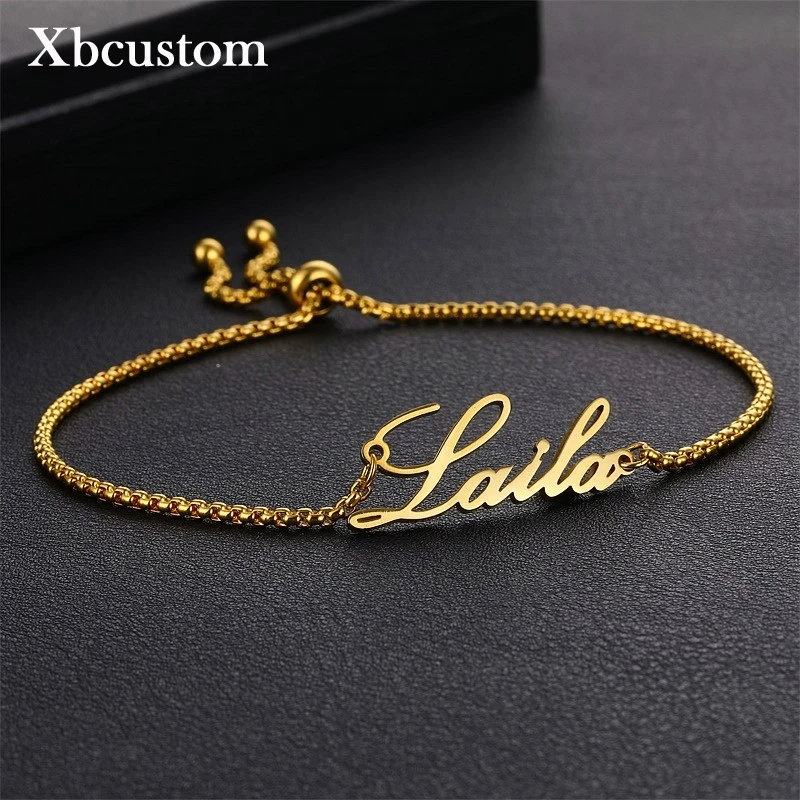 Браслет с именем для женщин и девочек, цепочка из нержавеющей стали...