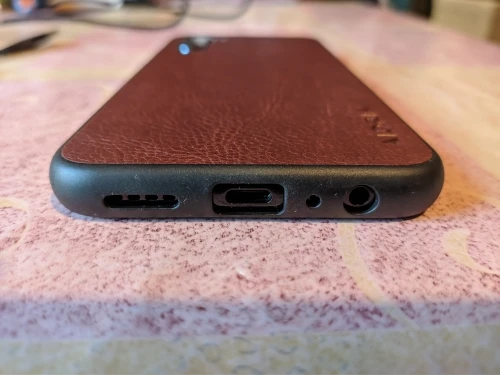 Чехол подошёл идеально, сидит плотно. Бортики над экраном отсутствуют, вровень с экраном, а при наличии защитного стекла(не плёнки) оно выпирает ощутимо для кого то это плюс, а кому то минус.... Сам чехол в руках не скользит, приятнее и компактнее родного силикона. Задняя крышка из мягкого кожзама, напоминает обивку торпеды авто премиум сигмента. Все отверстия полностью совпадают. Камера вровень с чехлом, не выпирает из за чего телефон лежит на поверхности ровно.