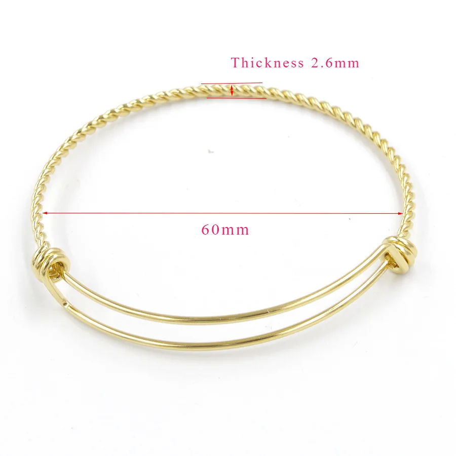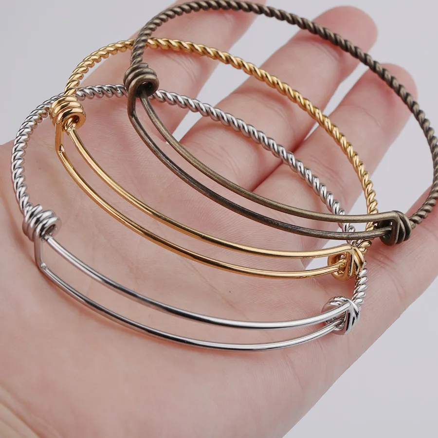 100% нержавеющая сталь расширяемые витые браслеты и браслеты для женщин 2,6 мм DIY металлические регулируемые манжеты браслет оптовая продажа 10 шт./лот