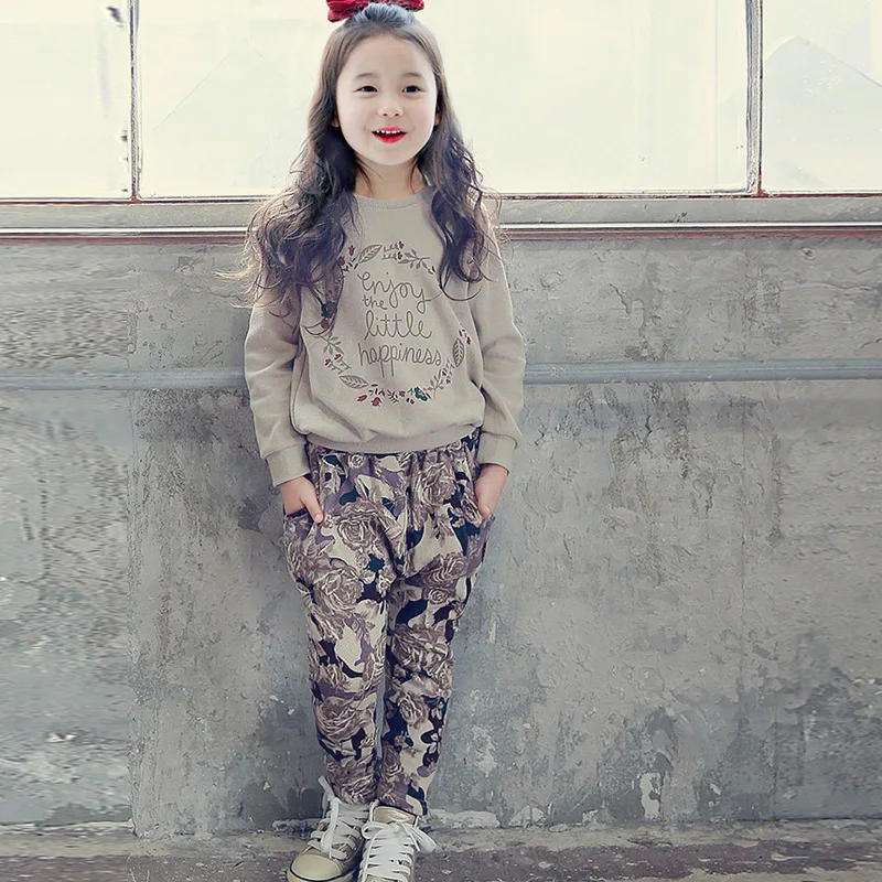 Комплект одежды для девочек 5-12 лет, кофта с длинным рукавом и штаны, детская одежда, комплект на осень-зиму