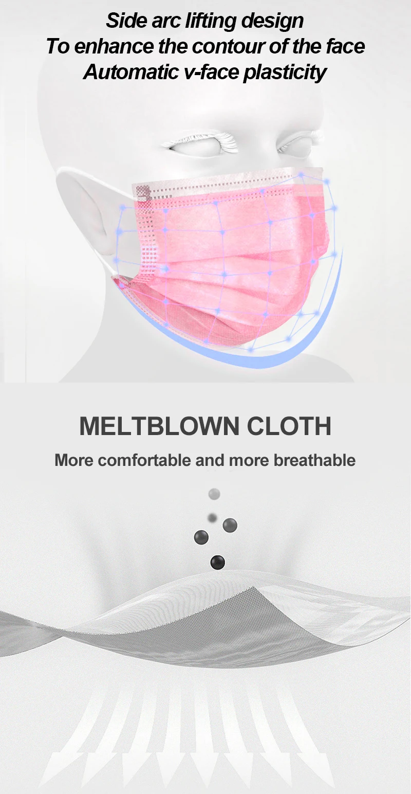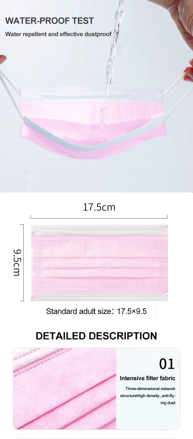 10-200 шт. розовый одноразовая маска для лица из нетканого материал...
