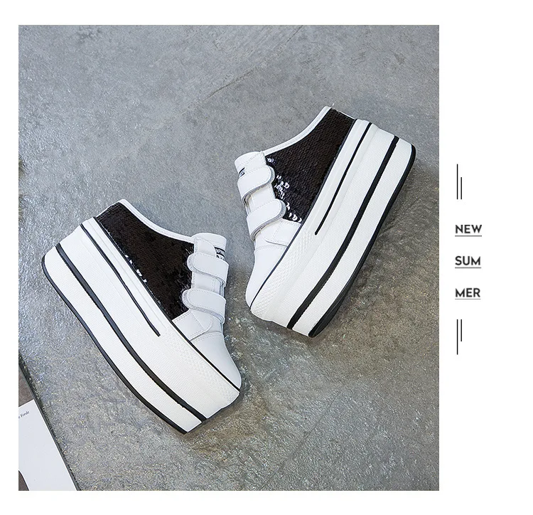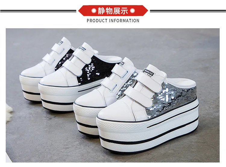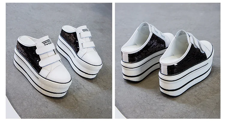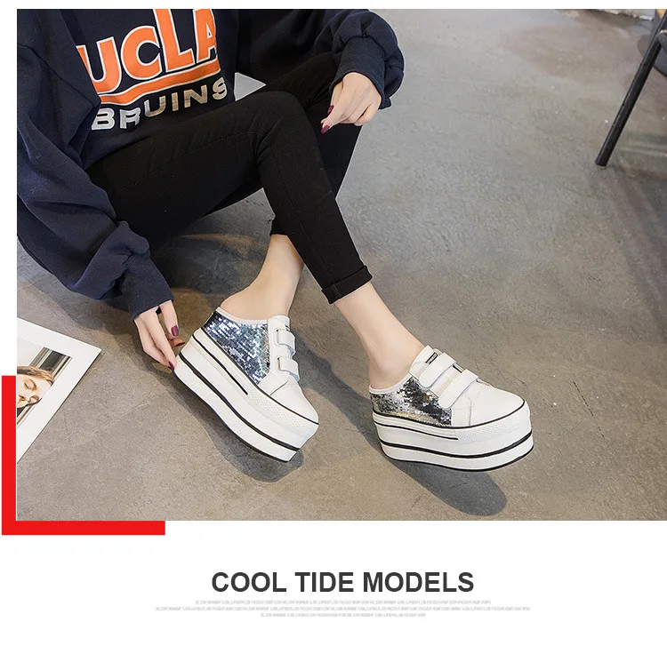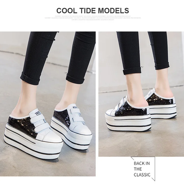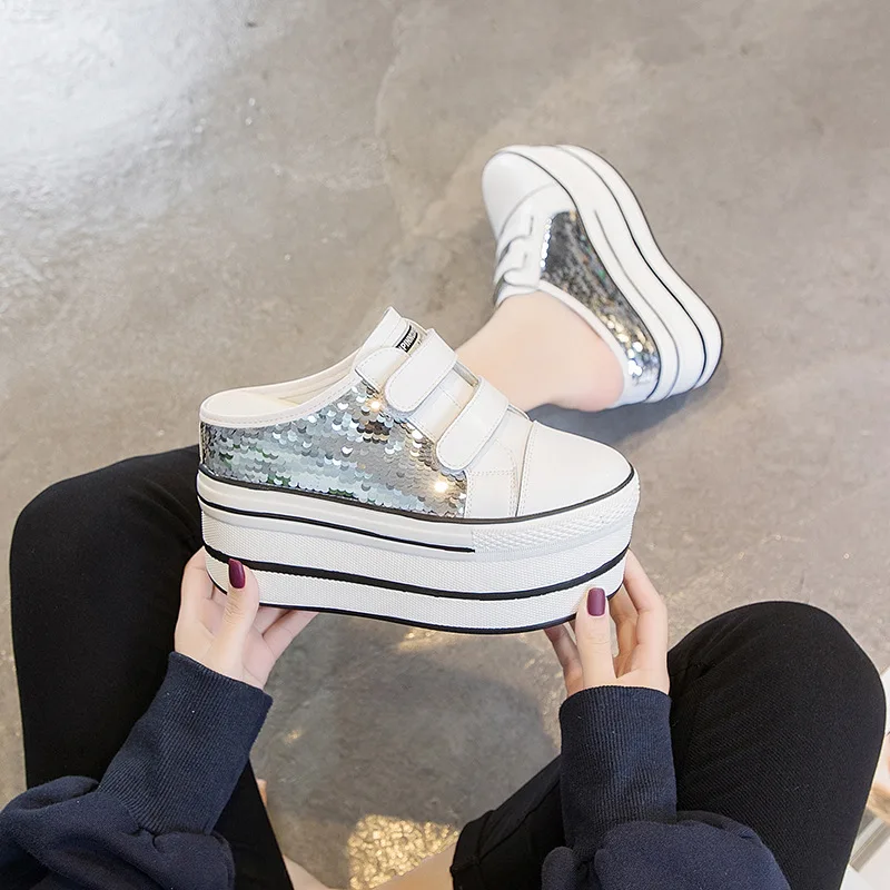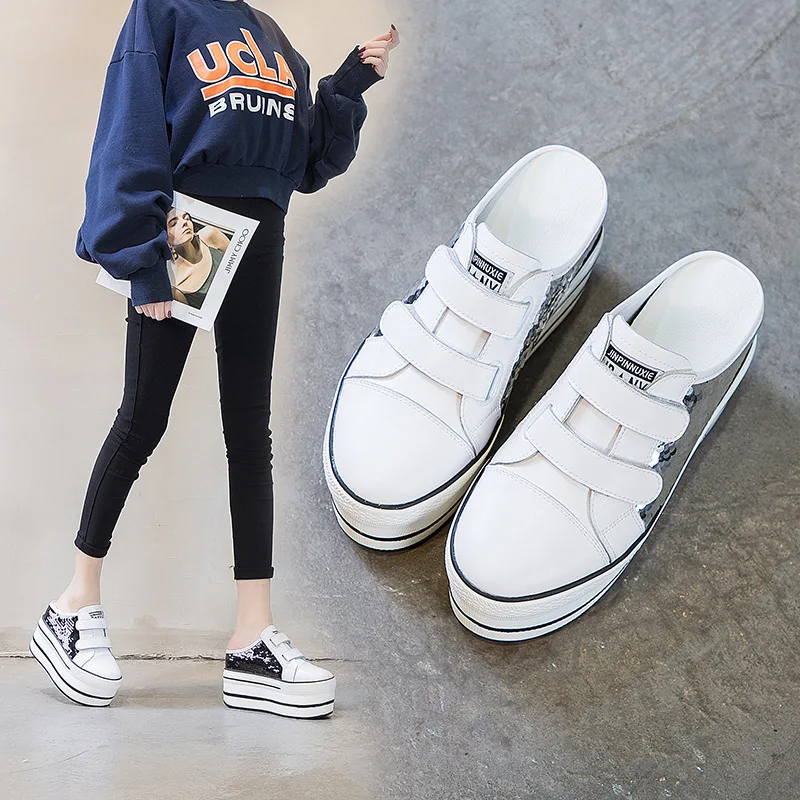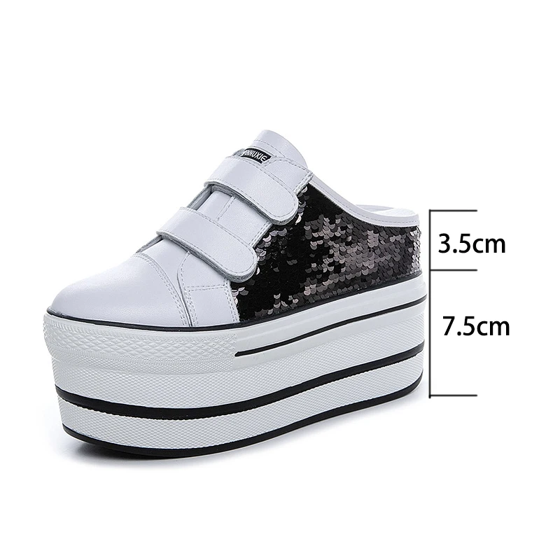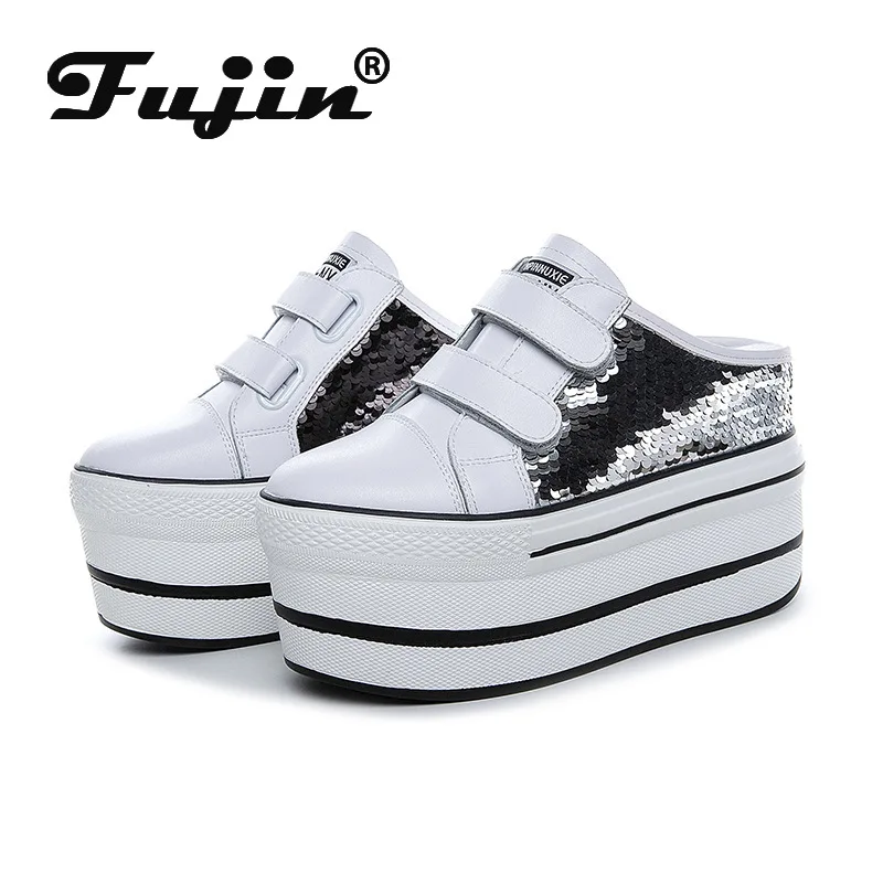 FujinЖенская обувь на платформе; Сезон весна-лето; Обувь на платформе, визуально увеличивающая рост; Женские шлепанцы с блестками; Baotou; Женская обувь на липучке