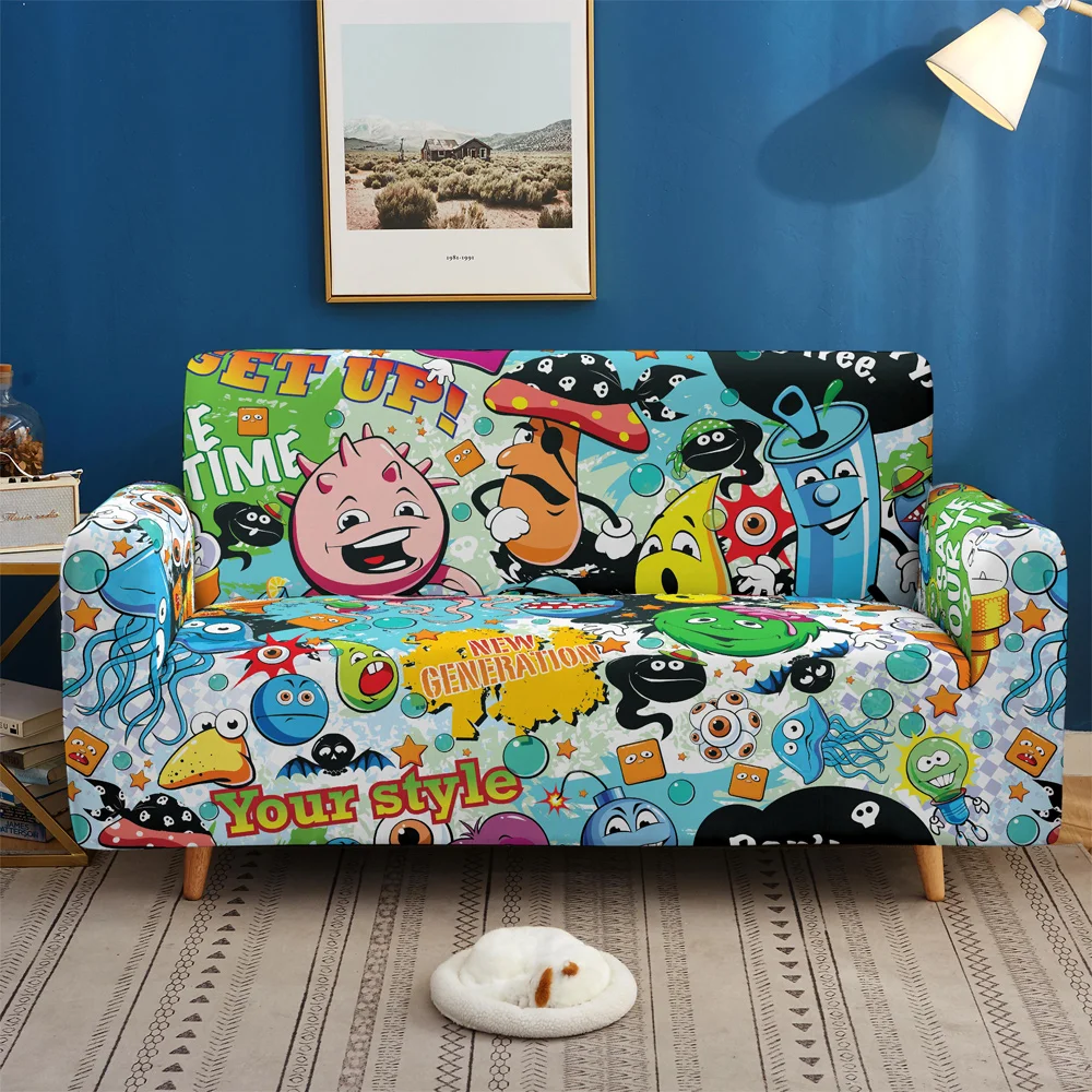 Чехол для дивана, эластичный, в стиле хип-хоп, с принтом граффити