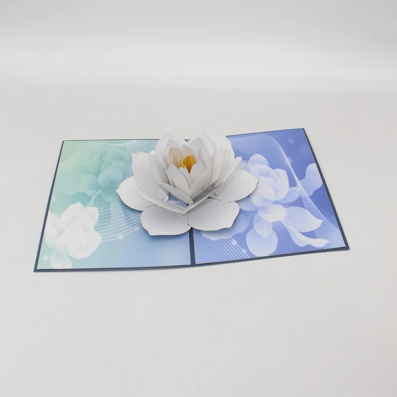 Поздравительные открытки с белым снегом и лотосом 3D ручной работы, открытка на день благодарения, День матери, День Святого Валентина, креативный подарок на день рождения