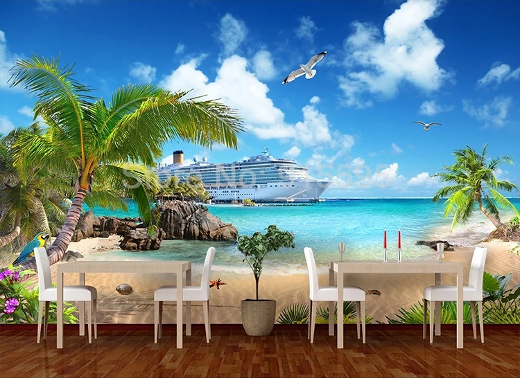 3D фотообои на заказ, для балкона, песчаного пляжа, Морского Пейзаж...