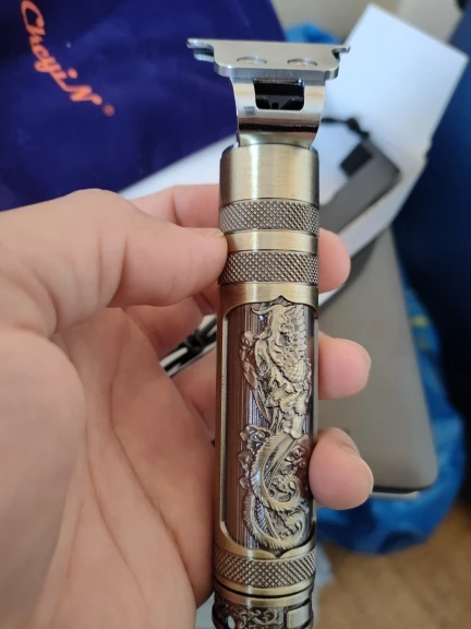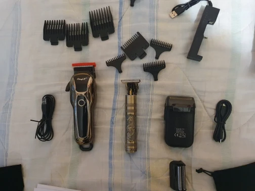 Вообщем, чувства смешанные. Пришло быстро. Самая большая стрижёт не плохо, заряда хватает на два раза. Средняя, с драконом, хорошо выстрегает полосы, но надо привыкнуть. К недостаткам средней, 1) быстро нагревается и начинает обжигать голову, 2) нет возможности использовать на зарядке, но если купить аккумулятор 18650, то можно поменять. И самая бесполезная это 3я машинка. Для бороды и даже подбривать затылок не пойдет, даже на руке волосы не цепляет. Вывод: 1я и 2я хорошо, а 3я деньги на ветер!