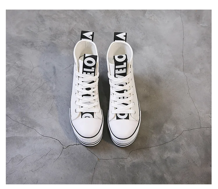 FujinЖенская обувь на плоской подошве; Сезон осень-зима; Повседневная обувь; 2020; Обувь с высоким берцем на толстой подошве; Женская парусиновая обувь с круглым носком и буквенным принтом