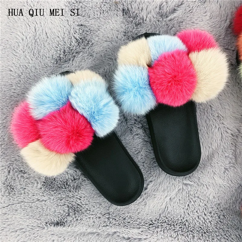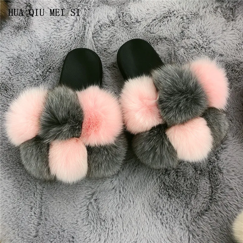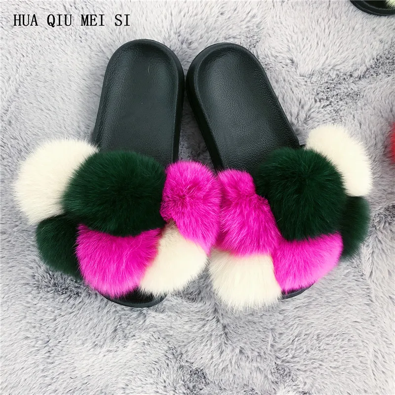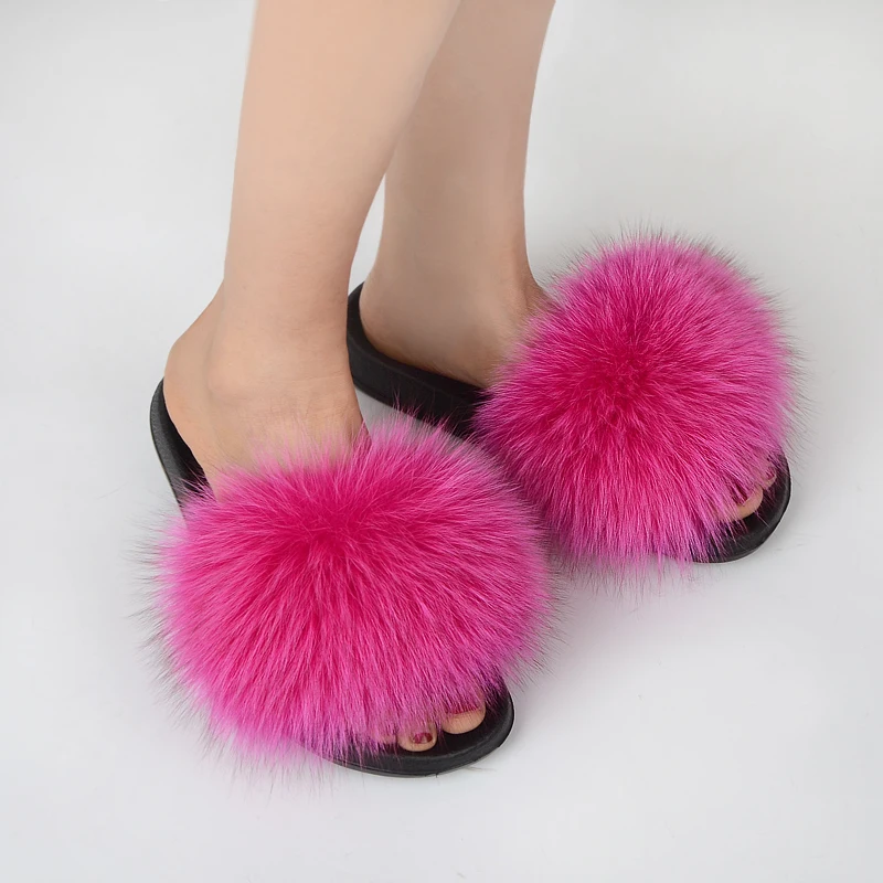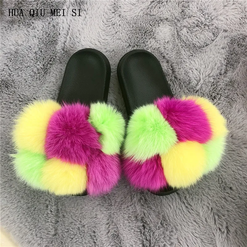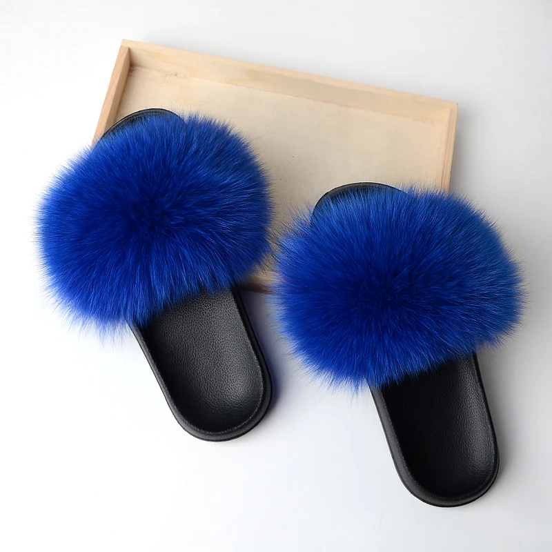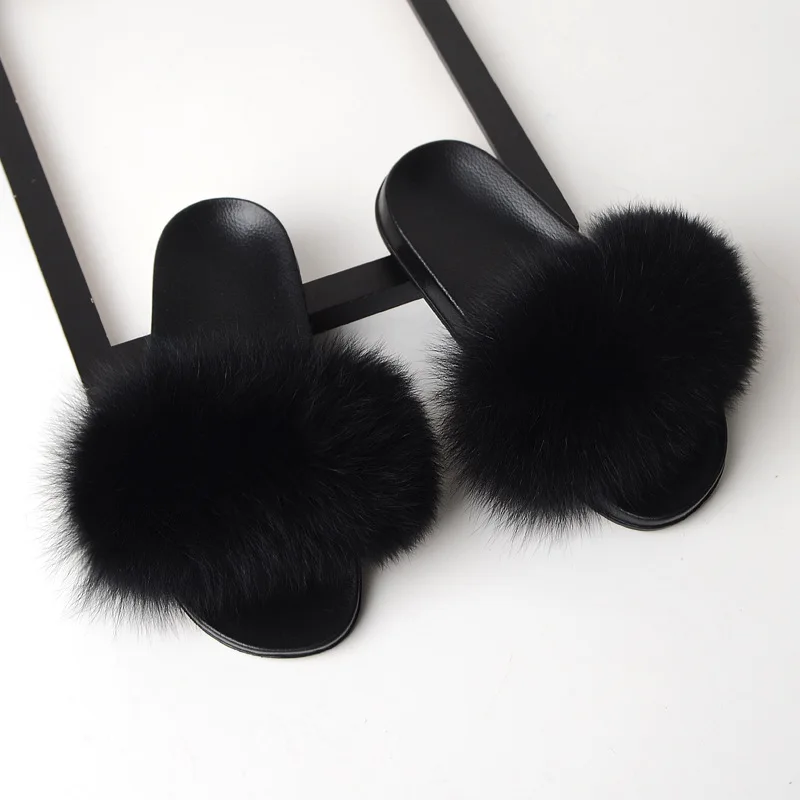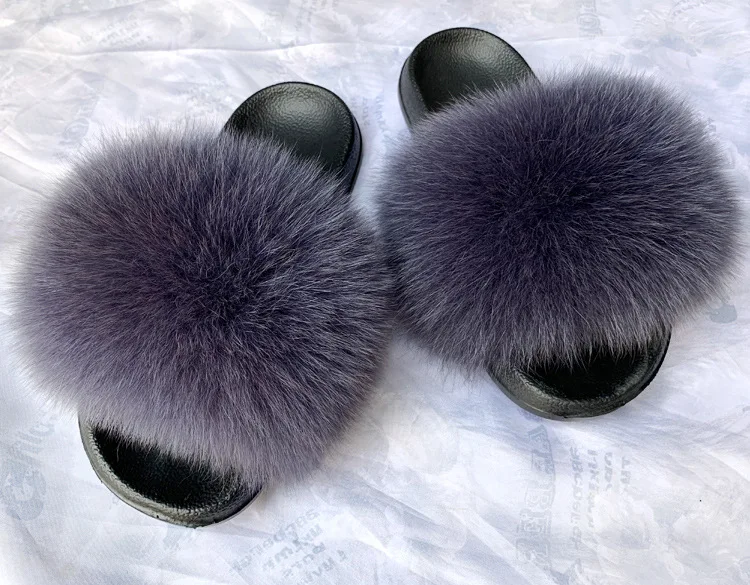 Меховые тапочки, меховые тапочки из натурального Лисьего меха, летние повседневные модные меховые тапочки из натурального меха