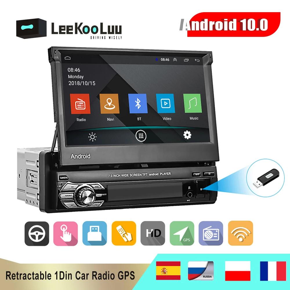 Автомагнитола LeeKooLuu, Android 10,1, 1 Din, 7 дюймов, сенсорный экран, автомобильный мультимедийный плеер, GPS-навигация, Wi-Fi, MP5, Bluetooth, USB