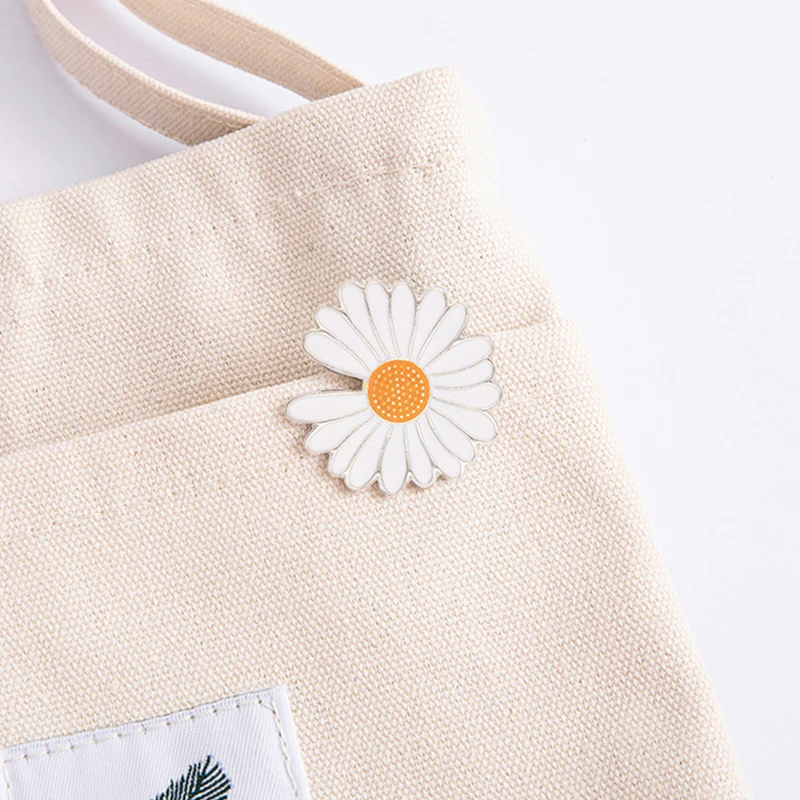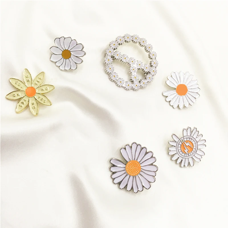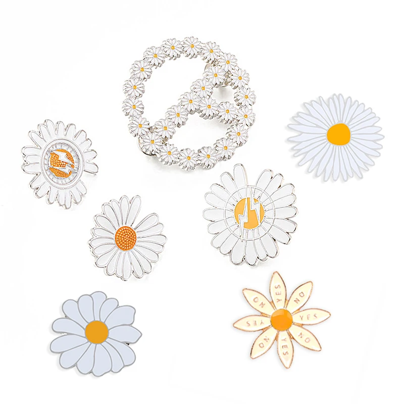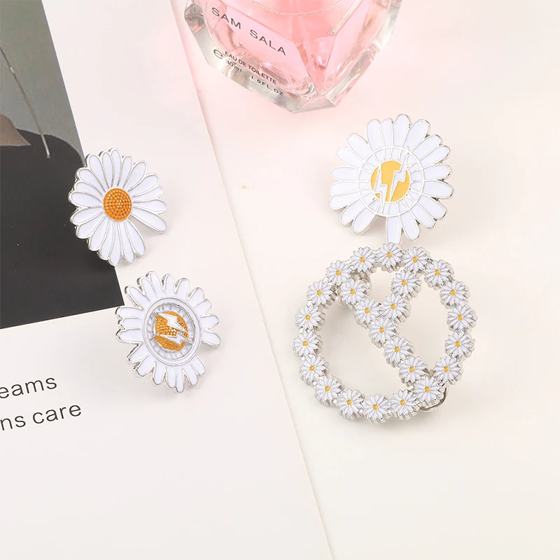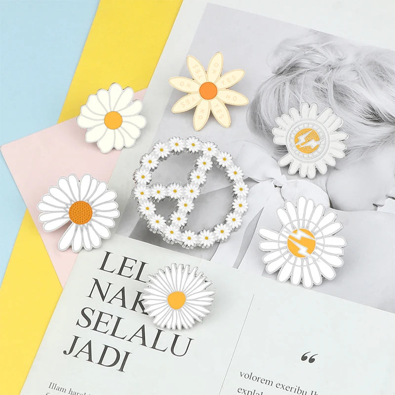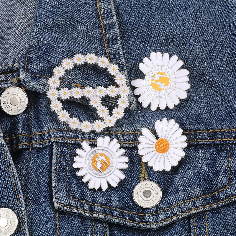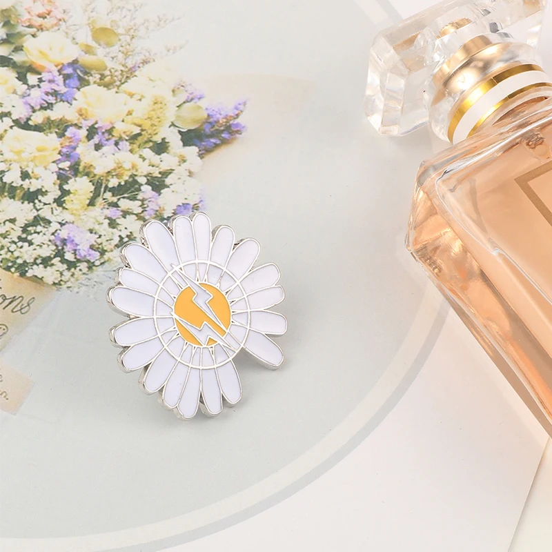 Брошь на воротник рубашки и рюкзака, с эмалью, с белой молнией и цветком Маргаритки