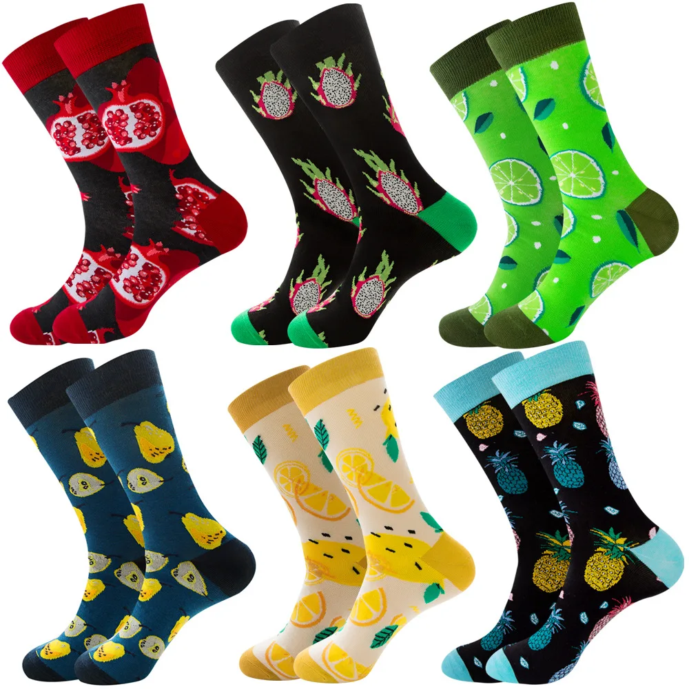 6 пар, разноцветные хлопковые носки большого размера, мужские рождественские полосатые повседневные модные зимние носки с животными и фруктами, забавные мужские носки