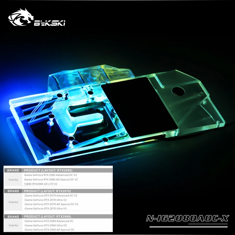 Bykski блок водяного охлаждения для красочного IGame geforce RTX 2080 ,2070,2060 Advanced OC V3, 3pin4pin sync MB светильник N-IG2080AOC-X
