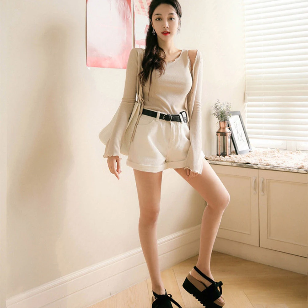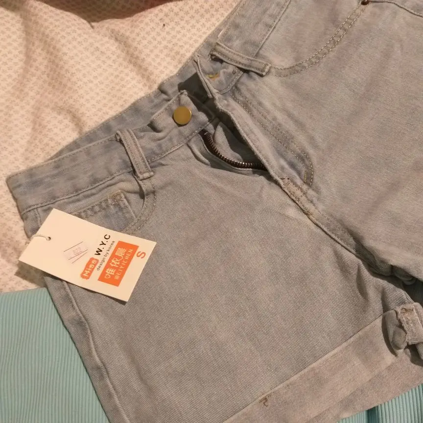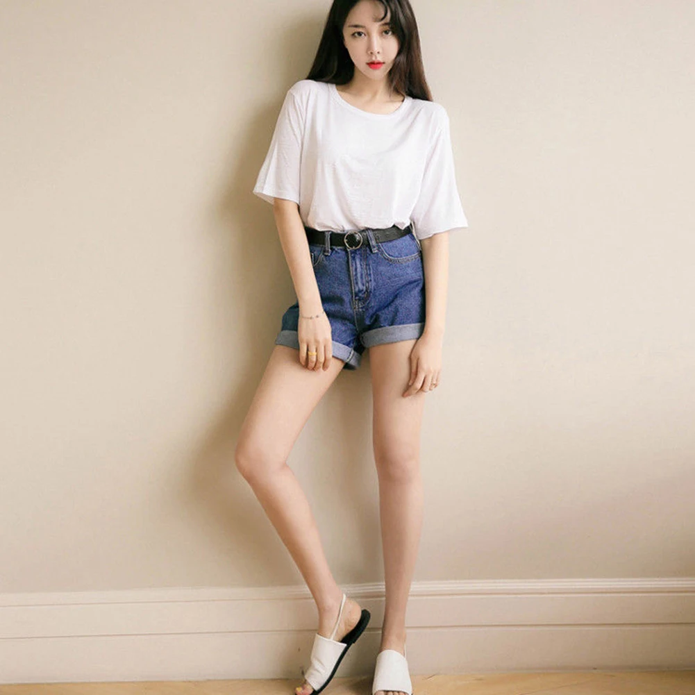 Женские джинсовые шорты, однотонные короткие джинсовые шорты с высокой талией, манжетами и карманами, лето 2020, тянущийся эластичный широкий