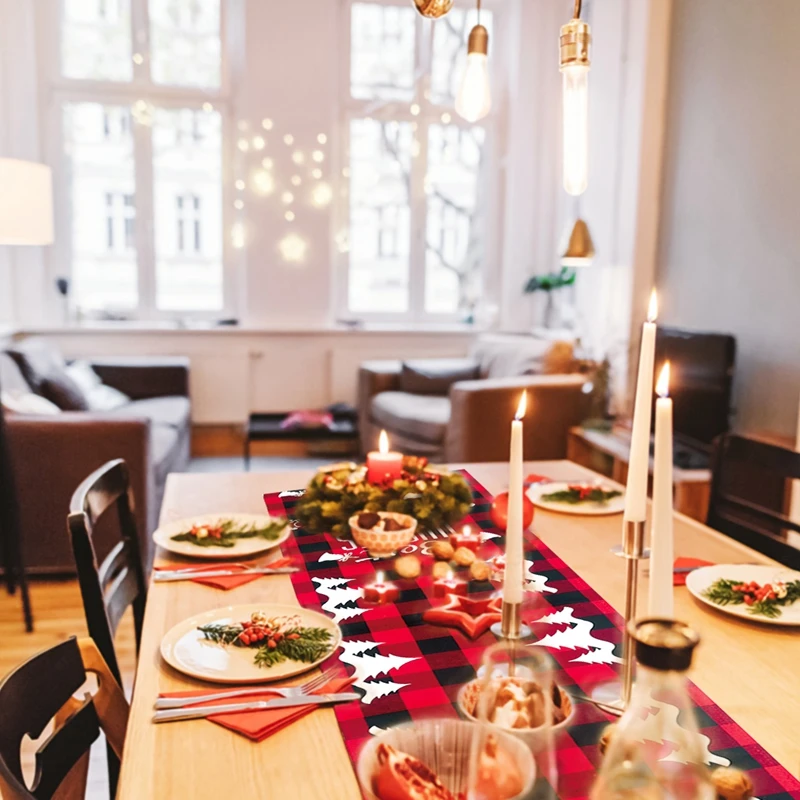 Льняная Рождественская настольная дорожка рождественские украшения ...
