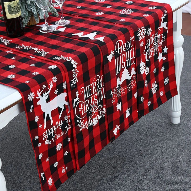 Рождественская клетчатая скатерть для стола, красная, черная скатер...