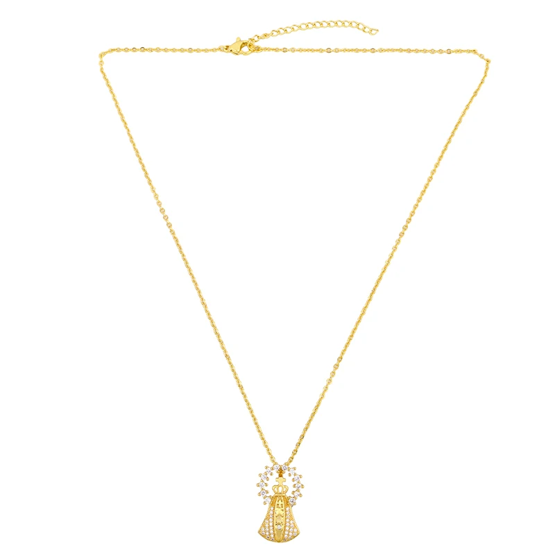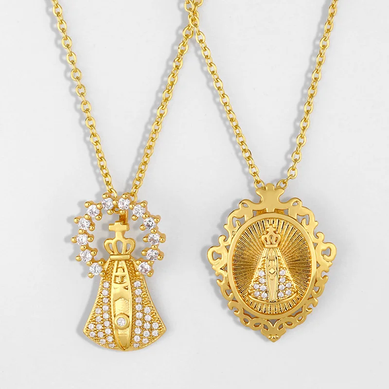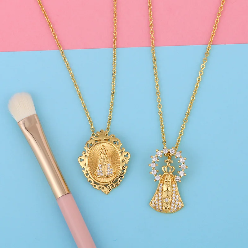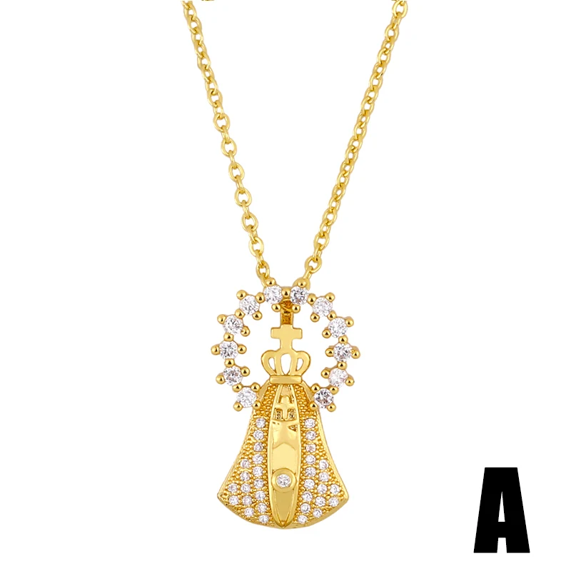 Золото звеньевая цепь Девы Марии ожерелье для женщин со стразами ка...